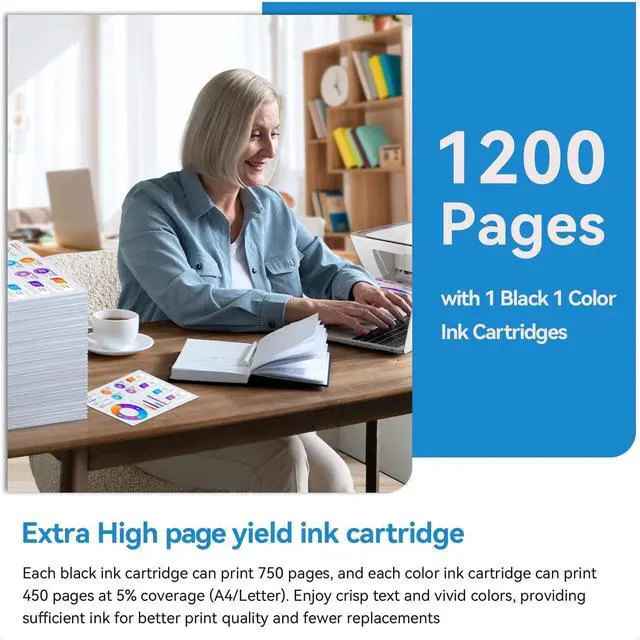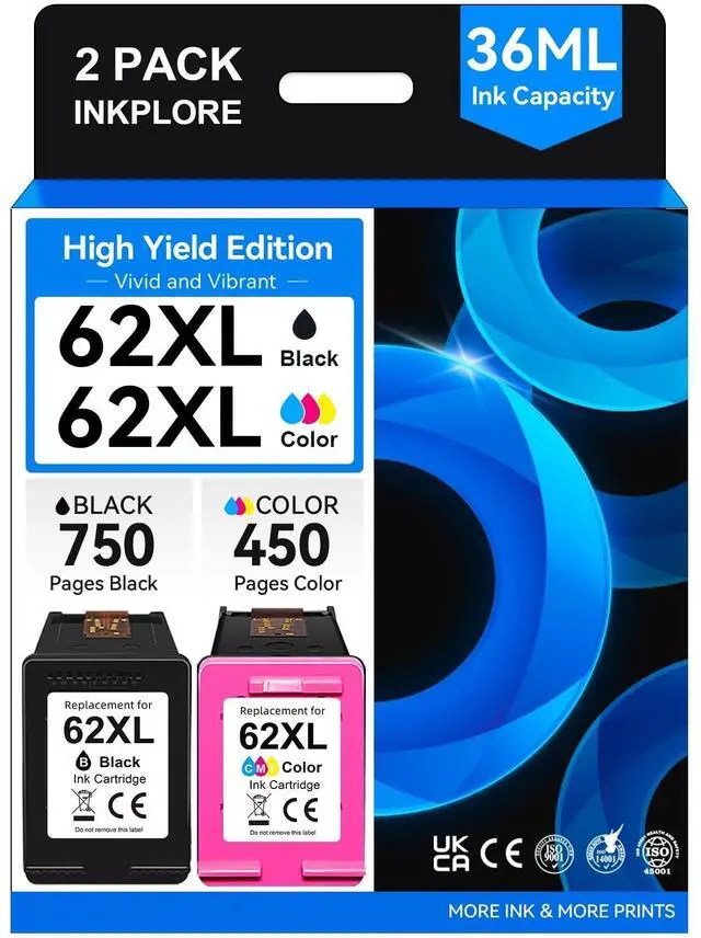 Large Capacity: 750 pages per 62xl black ink cartridge, 450 pages per 62xl color ink cartridge at 5% coverage ^^ Compatible for Envy 5540, 5541, 5542, 5543, 5544, 5545, 5547, 5548, 5549, 5640, 5642, 5643, 5644, 5660, 5661, 5663, 5664, 5665, 7640, 7643, 7644, 7645 Printer ^^ Compatible for OfficeJet Mobile 200, 250, 258 Printer; compatible for OfficeJet 5740, 5741, 5742, 5743, 5744, 5745, 5746, 8040, 8045, 5745 Inkjet Printer, Print, Scan, Copy ^^ Designed for efficiency, these high yield 62xl ink cartridges delivers vibrant prints, effortless installation, and fewer replacements