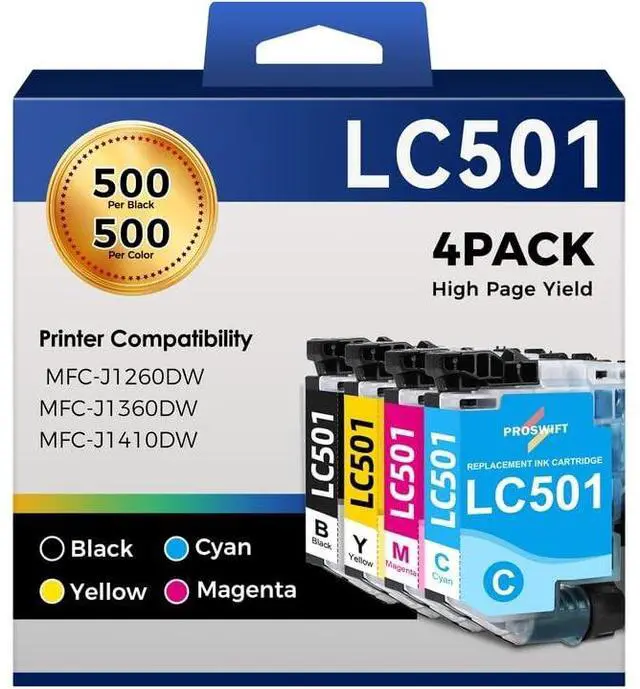 High Page Yield: Up to 500 pages per lc501xl black ink cartridges, 500 pages per color lc501xl ink cartridges (at A4 paper, 5% coverage)