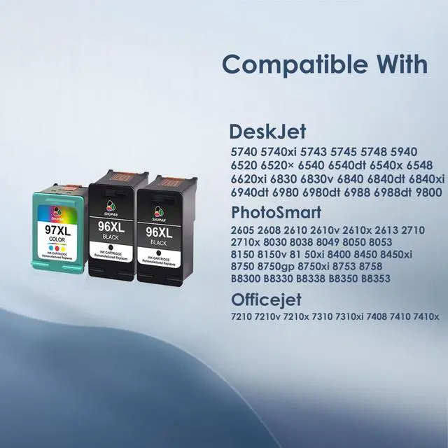 FOR HP 96 97 INK CARTRIDGES COMBO PACK COMPATIBLE PRINTERS Photosmart Series: 2570 / 2573 / 2575 / 2575a / 2575v / 2575xi / 2605 / 2608 / 2610 / 2610v / 2610xi / 2613 / 2615 / 2710 / 2710xi / 2713 / 8038 / 8049 / 8050 / 8050xi / 8150 / 8150v / 8150xi / 8400 / 8450 / 8450gp / 8450xi / 8453 / 8750 / 8750gp / 8750xi / 8753 / 8758 / D5145 / D5155 / D5160 / D5163 / D5168 / Pro B8300 / Pro B8330 / Pro B8338 / Pro B8350 / Pro B8353 ^^ FOR HP INK 96 97 COMPATIBLE PRINTERS