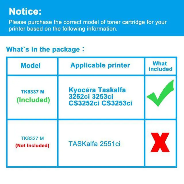 • Compatible Printers: Replacement for Kyocera Taskalfa 3252ci 3253ci CS3252ci CS3253ci