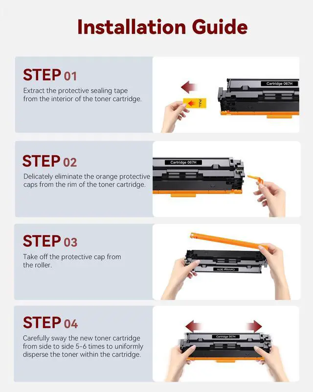 ^^ With Built-In Chip: Compatible with Canon 067H toner cartridges are designed with integrated chips, simplifying the setup process and eliminating the need to transfer old chips to the crg-067h toner cartridges.