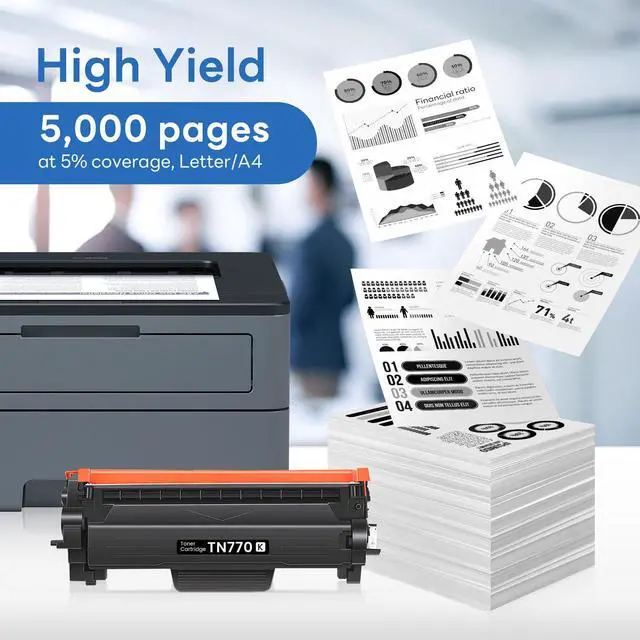 ^^ High yield: Up to 5, 000 pages per TN770 Black Toner Cartridge (at 5% coverage, Letter/A4).