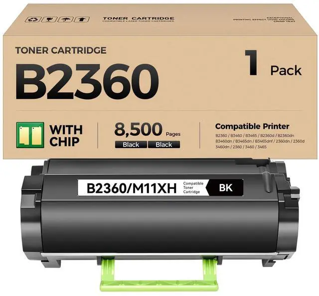Package Contains: 1 Pack Black compatible with Dell B2360 M11XH toner cartridge.