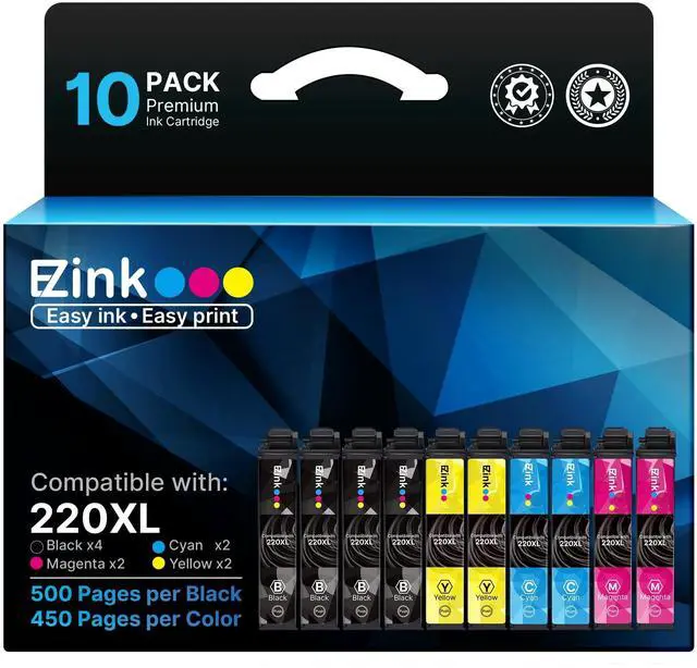 Package Contents: Total 10 Pack remanufactured for 220XL ink cartridges, 4 x Black 220 XL, 2 x Cyan 220 XL, 2 x Magenta 220 XL, 2 x Yellow 220 XL ^^