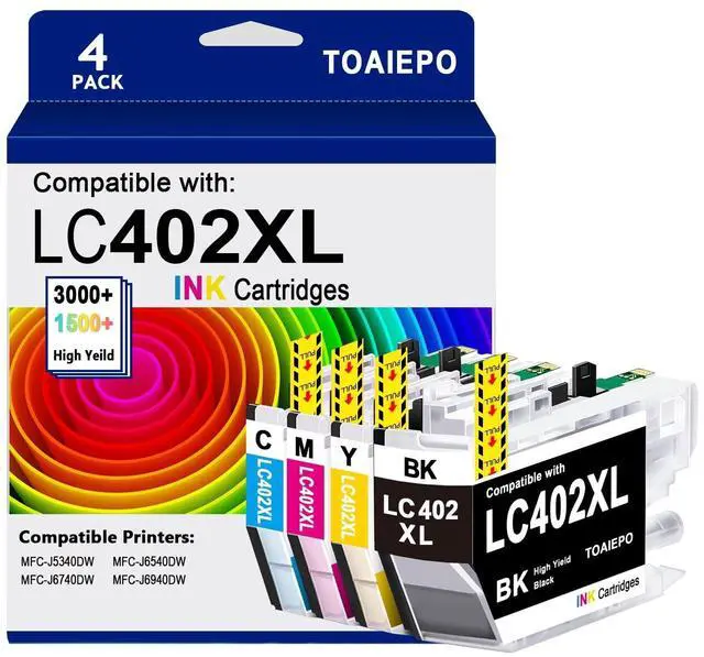 Printer Compatibility: TOAIEPO LC402XL Ink Cartridges work for Brother MFC-J5340DW MFC-J6540DW MFC-J6740DW MFC-J6940DW, compatible for Brother MFC J6940DW MFC J5340DW MFC J6540DW MFC J6740DW Printer.