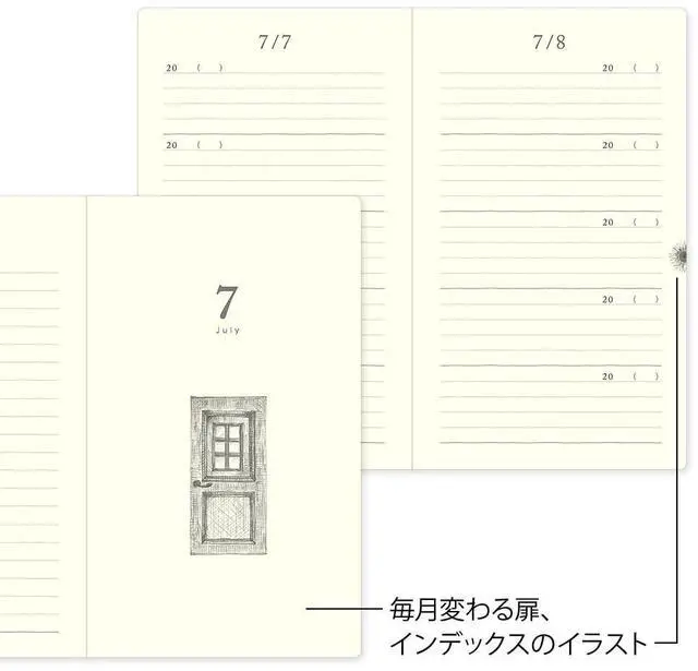 Comes in a compact size that is suitable for storing and is recommended as a gift. The format of this sentence is ruled horizontally, and the first page and the index section will change every month. Feel the season and keep your journal entertained. The text uses MD paper that is hard to bleed or bleed through, and the binding uses a "thread binding" that is characterized by its easy to open and durable finish.