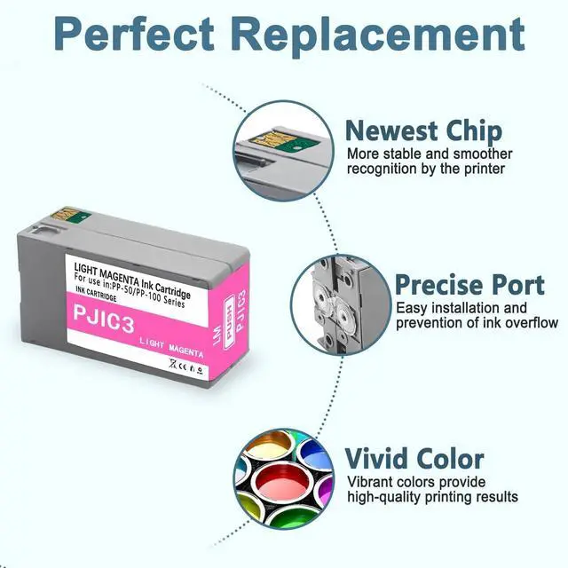 Superior Quality: This high-yield PP50 PP100 ink cartridge uses the latest chip technology and high-quality pigment ink, with an anti clogging nozzle design and easy installation. Provide clear text and graphics, comparable to the original ^^