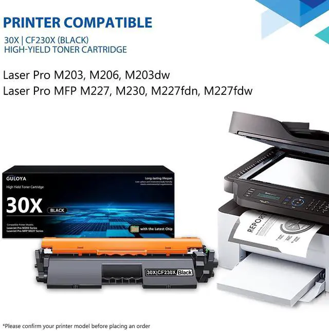 This cartridge works with: Laser Pro M203dn, M203dw (G3Q47A); Laser Pro MFP M227fdn (G3Q79A), M227sdn, M227fdw (G3Q75A) Printer ^^ Cartridge yield (approx. ): 4, 000 pages per black ^^ Count on reliable, high-quality printing and save time by avoiding common printing issues; And use our Toner Cartridges to avoid toner leaks, premature failures or dangerous code as much as possible ^^ Buy sustainable Recycled content is included in our toner cartridges; Our Toner Cartridge is voluntarily designed and tests its printing systems to meet Eco-label emissions guidelines