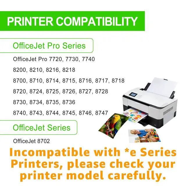 952XL-Compatible for: OfficeJet Pro Series Printers 7720, 7730, 7740, 8200, 8210, 8216, 8218, 8700, 8710, 8714, 8715, 8716, 8717, 8718, 8720, 8724, 8725, 8726, 8727, 8728, 8730, 8734, 8735, 8736, 8740, 8743, 8744, 8745, 8746, 8747 and OfficeJet Series Printer 8702. 952 xl ink cartridges, 952xl ink cartridges combo pack, printer ink 952xl, 952 xl printer ink cartridges combo pack, ink 952xl, Officejet Pro 8710, 7740, 8720, 8702, 8210, 7720, 8715, 8730, 8740, 8216, 8725, 8700, 8200, 7730, 8743 ^^ 952XL-Incompatible with "e" models: Attention please, this cartridges can NOT work on printers with *e series with HP+ Service because they're not remanufactured. 952 xl ink cartridges, 952xl ink cartridges combo pack, printer ink 952xl, 952 xl printer ink cartridges combo pack, ink 952xl, Officejet Pro 8710, 7740, 8720, 8702, 8210, 7720, 8715, 8730, 8740, 8216, 8725, 8700, 8200, 7730, 8743 ^^ 952XL-High