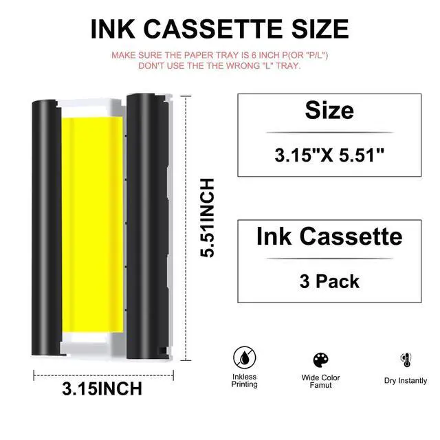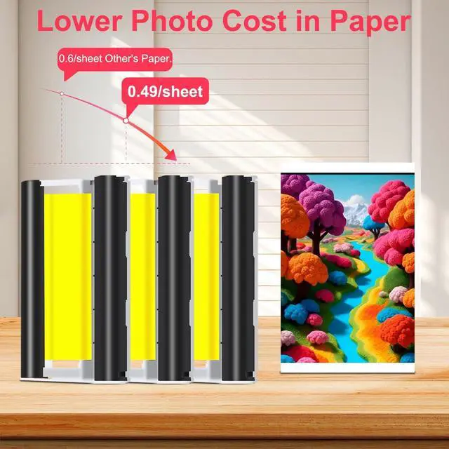 ^^ Extraordinary Photo Quality: With dye sublimation technology, the dye penetrates deep into the paper. For ease of use, one cartridge combines three RGB primary colors, which can be automatically recognized after installation, and the high compatibility of the cartridges allows us to get high quality photo quality even with low expenses.