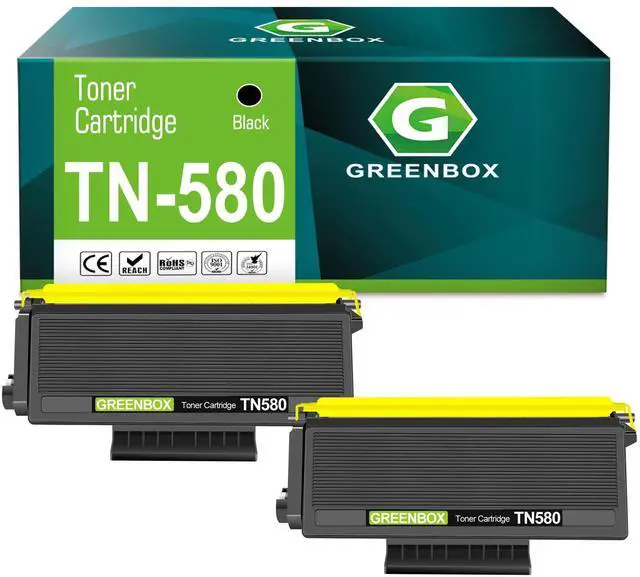 Contents: 2 pack replacement for Brother TN580 toner cartridge - TN580*2 black ^^ GREENBOX Compatible for Brother TN580 toner cartridge provides clear text and graphics, print the color effect you want on the paper