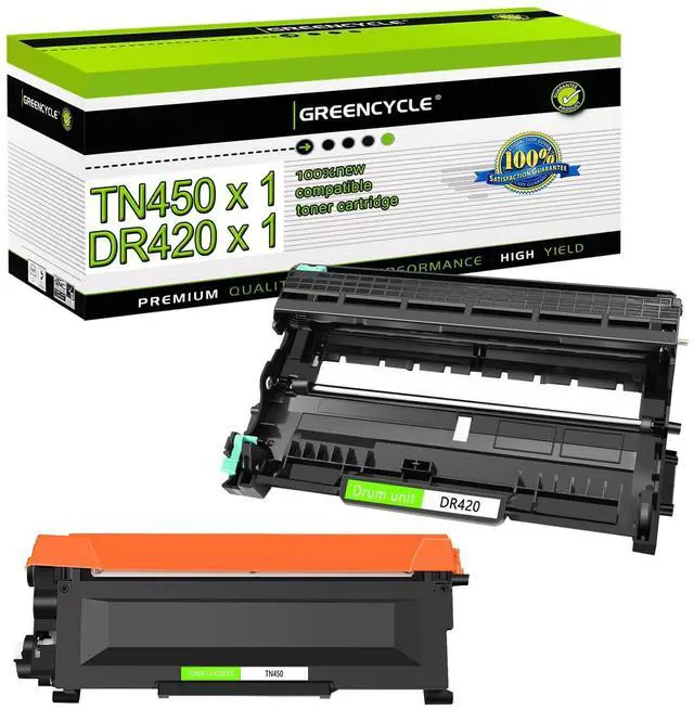Greencycle Compatible Toner Cartridge Replacement for Brother TN450 TN420 Toner & Compatible Drum Unit Replacement for Brother DR420 DR-420 Drum.