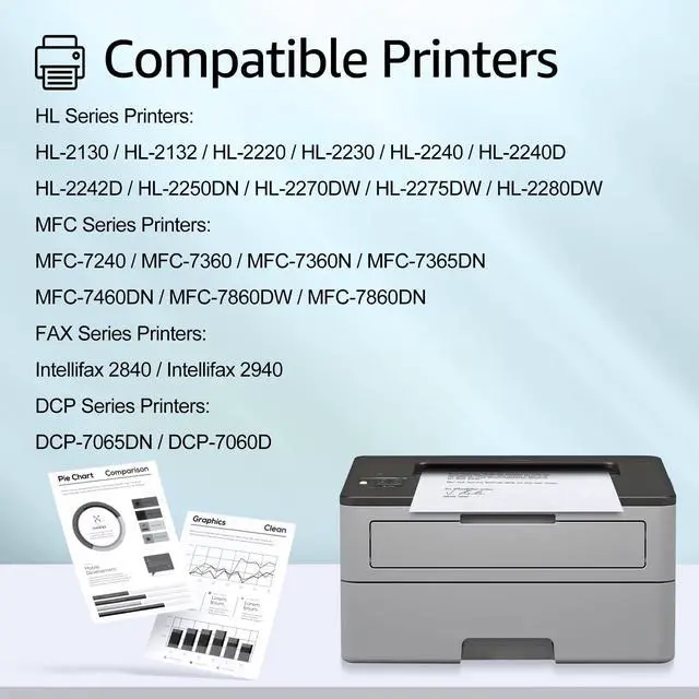 Brother Printer: DCP-7065DN DCP-7060D; HL-2130 HL-2132 HL-2220 HL-2230 HL-2240 HL-2240D HL-2242D HL-2250DN HL-2270DW HL-2275DW HL-2280DW; MFC-7240 MFC-7360 MFC-7360N MFC-7365DN MFC-7460DN MFC-7860DW MFC-7860DN; Intellifax 2840, Intellifax 2940 ^^ Compatible tn-450/tn-420 toner cartridges and drum dr420 provide great performance. Make your presentations and printouts stand out wit GREENCYCLE toner cartridge and drum that produces clear, crisp, bold, and eye-catching text and graphics that keep people awake at your next meeting.