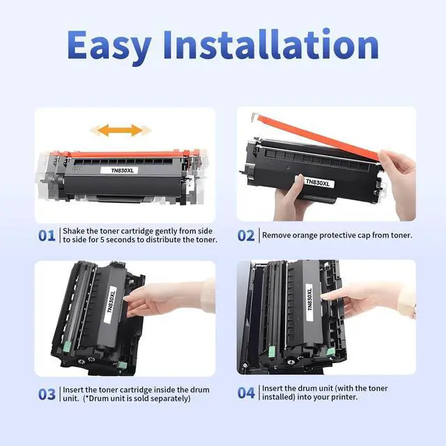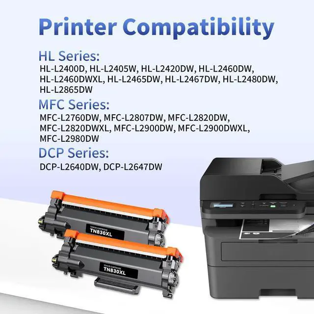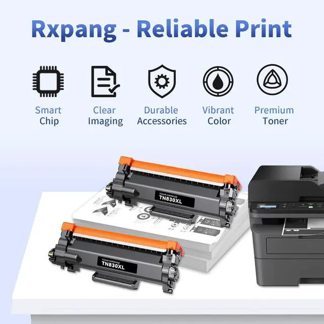 Compatible Printers - This TN830 toner cartridge is compatible with the following printer models: HL-L2460DW, HL-L2405W, HL-L2400D, HL-L2480DW, HL-L2420DW, HL-L2460DWXL, HL-L2465DW, HL-L2467DW, HL-L2865DW, DCP-L2640DW, DCP-L2647DW, MFC-L2820DW, MFC-L2760DW, MFC-L2807DW, MFC-L2820DWXL, MFC-L2900DW, MFC-L2900DWXL, MFC-L2980DW. ^^ Upgraded TN830XL Toner for Reliable Performance - Rxpang TN830XL toner cartridges are equipped with the latest chip version, ensuring consistent performance with printers using these models. Say goodbye to OEM prices and hello to smart, cost-effective printing. ^^ High-Yield Printing for Maximum Productivity - Each tn830 xl delivers up to 3, 000 pages based on 5% coverage, and this 2-pack offers a total yield of over 6, 000 pagesideal for schools, small businesses, home offices, and remote work setups. Reduce downtime and printing costs with a reliable high-capacity solution. ^^ Hassle-Free Installation and User-Friendly Design - Designed with user convenience in mind, Rxpang toner tn830 installs smoothly in just a few stepsno tools required. Whether you're replacing toner at home or in the office, setup is simple and fast. ^^ Reliable Printing for Everyday Use Ideal for daily needs, the TN830 toner delivers sharp, smudge-resistant prints for school projects, homework, forms, and personal documents.