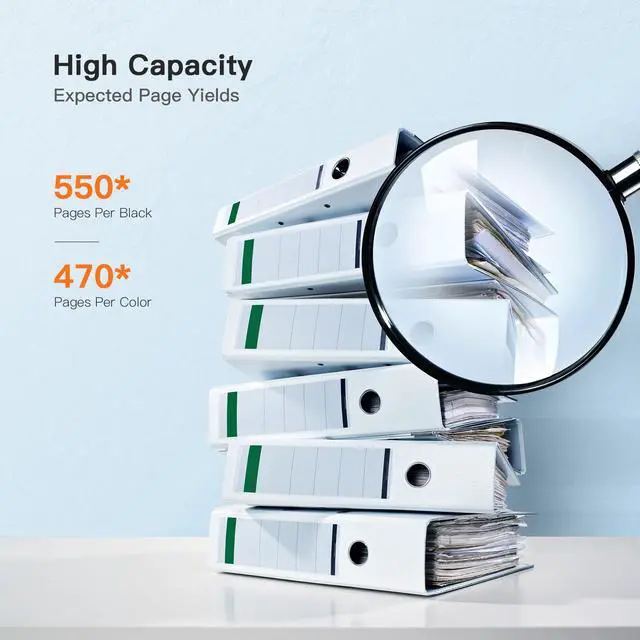 Page Yield: Black is 550 pages per cartridge and Color is 470 Pages per cartridge (5% coverage) ^^ Premium quality ink delivers crisp text and graphics