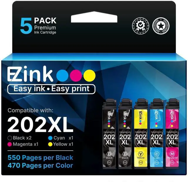 Package Contents: 1 x User Guide, 2 x Black 202XL, 1 x Cyan 202XL, 1 x Magenta 202XL, 1 x Yellow 202XL Total 5 Pack ^^ To use with WorkForce WF-2860, to use with Expression Home XP-5100 Printer ^^