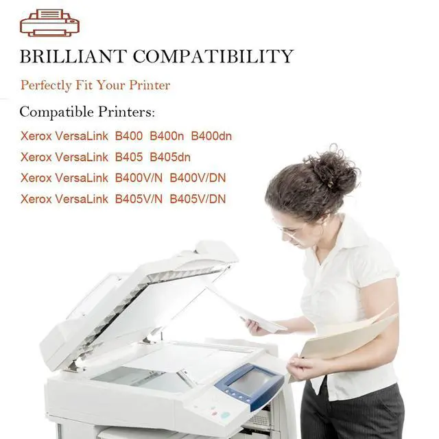 Package Contents - - Include 1 Pack Remanufactured Toner Cartridges for Xerox B400 B405 with Chip, 106R03584 Black x 1. ^^ Compatible Printers - - Suitable for use in Xerox VersaLink B400 B400n B400dn B405 B405dn B400/N B400/DN B405/N B405/DN Printers. ^^ High Print Yields - - Up to 24, 600 pages per toner cartridge, 5% coverage at A4 pager, based on ISO / IEC 19752. ^^ Print Advantages - - Refined toner powder and high-quality cartridge, deliver accurate bright color, sharp black and crisp graphics. ^^ Reliable Warranty - - Timely after-sales and quality assurance services, let you to enjoy the fun of printing easily.