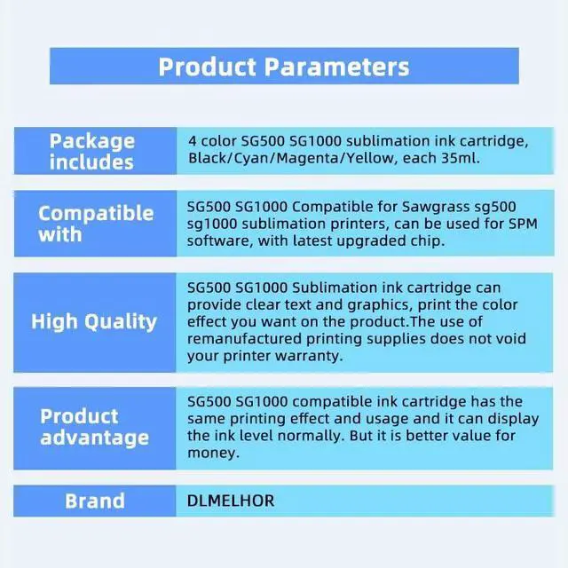 High Quality: SG500 SG1000 Sublimation ink cartridge can provide clear text and graphics, print the color effect you want on the product. The use of remanufactured printing supplies does not void your printer warranty.