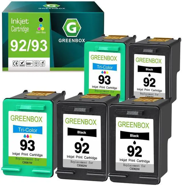 • Product name: 5 Pack GREENBOX 92 93 ink cartridge combo pack remanufactured 92 93 ink cartridge replacement for hp 92 93 ink cartridges - 92*3 black (C9362WN) + 93*2 tri-color (C9361WN)