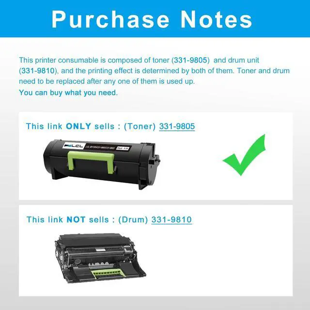 Reliable Quality: LCL 311-9805 cartridge uses high quality toner, toner particle size distribution, good mobility, high transfer rate, resulting in a clear image and high gloss print effect; Printing efficiency is high, waste powder rate is low, so as to ensure sufficient page yield.