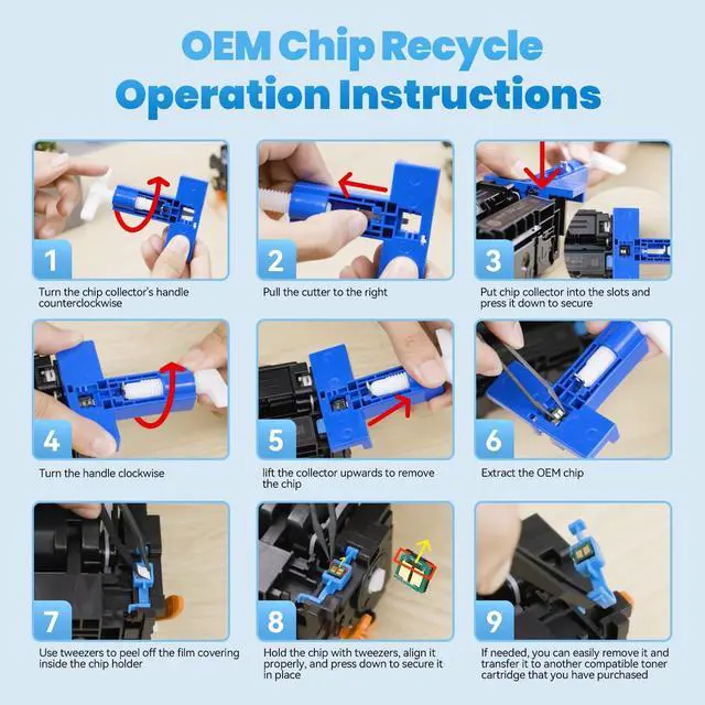 No Chip: XJI 218A toner cartridge does not come equipped with a chip. Please remove the original chip from either the 218A or 218X toner cartridge and install it into our toner cartridge. (tools already included) ^^