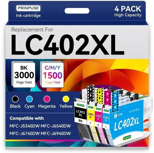 Page yield: LC402XL bk ink cartridge prints up to 3000 pages, LC402XL c/m/y ink cartridge prints up to 1500 pages per ink cartridge (letter/A4 on 5% coverage) ^^ Use PRINPUSE compatible cartridges to cost less but obtain equivalent printing performance to using original brand cartridges ^^ PRINPUSE compatible cartridges are manufactured following emissions guidelines to help support indoor air quality during use