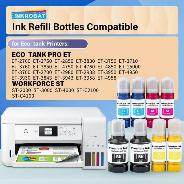 Compatible Printer: 8 Packs T502 ink for Eco-Tank ET-2850 ET-3850 ET-3760 ET-4850 ET-2750 ET-2760 ET-2980 ET-2988 ET-3930 ET-3950 ET-4950 ET-15000 ET-2700 ET-3700 ET-3710 ET-3750 ET-3830 ET-3843 ET-3943 ET-3958 ET-4750 ET-4760 ET-4958 ST-2000 ST-3000 ST-4000 ST-C2100 ST-C4100 etc printers.