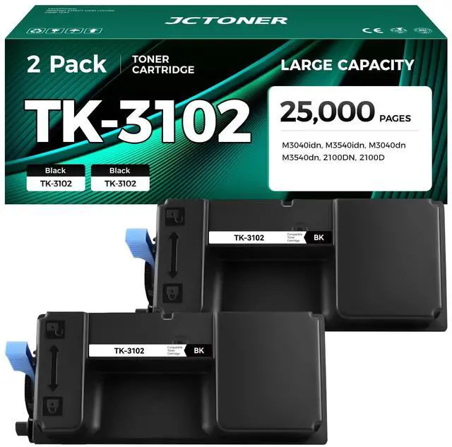 Item Name: JCTONER Compatible Replacement for TK3102 TK-3102 black toner cartridge 2 set (with chip).