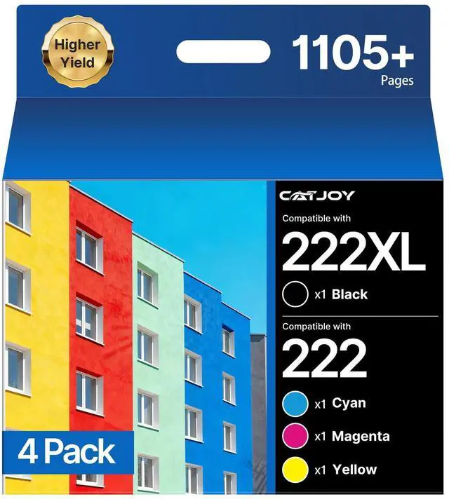 • What is Included: 4 Pack 222xl ink cartridges combo pack, 1 x black 222xl ink cartridge, 1 x cyan 222xl ink cartridge, 1 x magenta 222xl ink cartridge, 1 x yellow 222xl ink cartridge