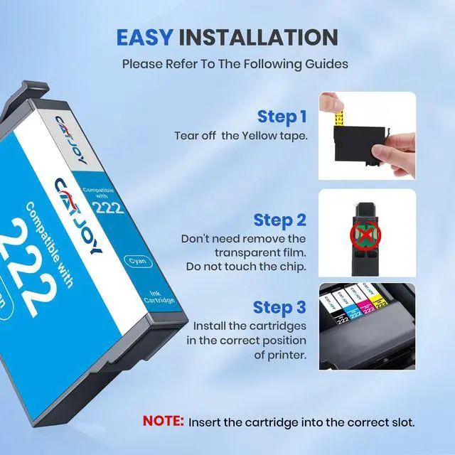 • Customer Support: We provide 2 years warranty and lifetime technical support for epson 222 ink cartridges. If you need support with our CATJOY 222xl ink cartridges for epson printer, get help day or night with our 24/7 live support, guaranteed to answer in 3 minutes or less