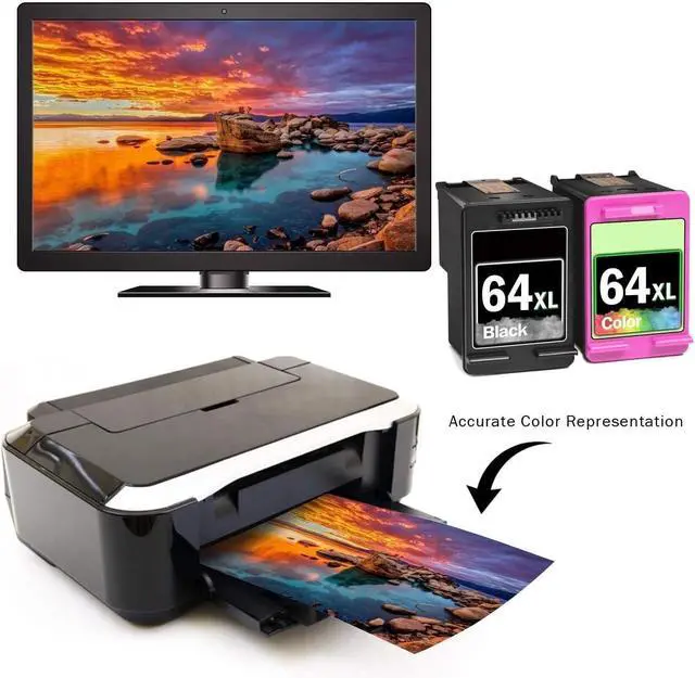 PACKAGE CONTAINS: 2 Pack for HP ink 64xl black and color combo pack xl cartridges (1 Black, 1 Color). GREAT QUALITY PRINTS WITH ZERO HASSLE. Effortlessly install and get consistent clear and vivid prints that match the performance of name-brand cartridges while saving money. GET HIGH YIELD CARTRIDGES THAT PRINT FOR LONGER. Remanufactured ink manufacturers are incentivized to fill their cartridges to the brim to compete with original manufacturers. We specifically test for ink fullness at the production stage.
