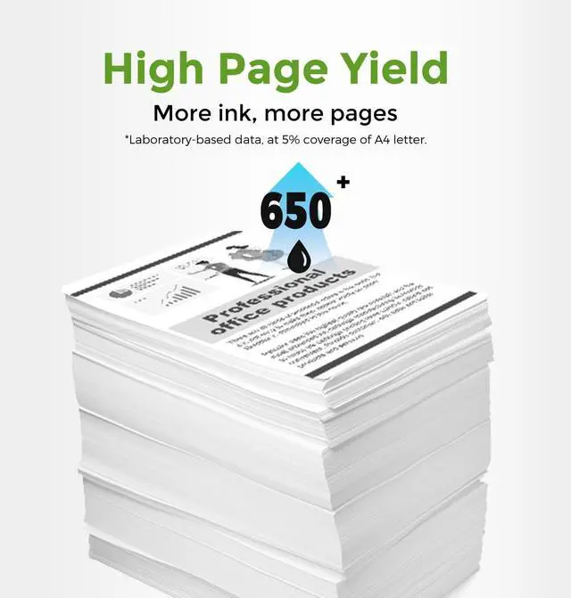 High Yield & More Capacity: Up to 650 pages per 61 XL Black ink cartridge (approx. ). The printer ink 61xl black storage capacity is more than tripled by optimizing the cartridge's internal space, ensuring that printing needs are fully met, you can enjoy worry-free and efficient printing.