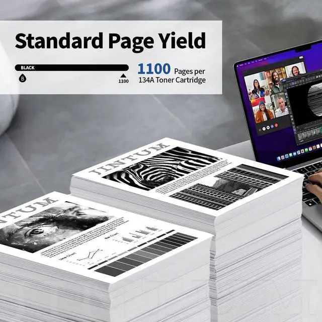 Page Yield: 134A black toner cartridge is up to 1100 pages per cartridge at 5% coverage ^^