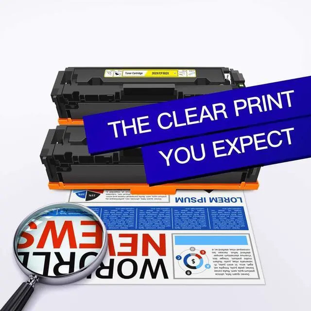 Includes: (1) Compatible 202X yellow Toner ^^ 5. With Upgraded ChipOur 202X 202A toner cartridges install easily with the upgraded printers delivering quality and vivid prints