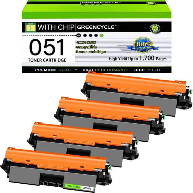 GREENCYCLE 4-Pack Compatible Toner Cartridge Replacement for CANON 051 CRG051 Toner. ^^ Stability and ReliabilityThe chip of 051 toner cartridge has powerful computing and processing capabilities to perform efficiently. It is stable, reliable and functionally depleted to ensure normal operation in a variety of environmental conditions.