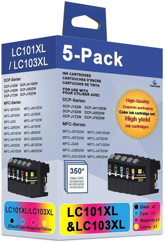 High Page Yield: Up to 350 pages per lc101 lc103 xl black ink cartridges, up to 350 pages per lc101 lc103 color ink cartridges (at 5% coverage of A4 Paper) ^^