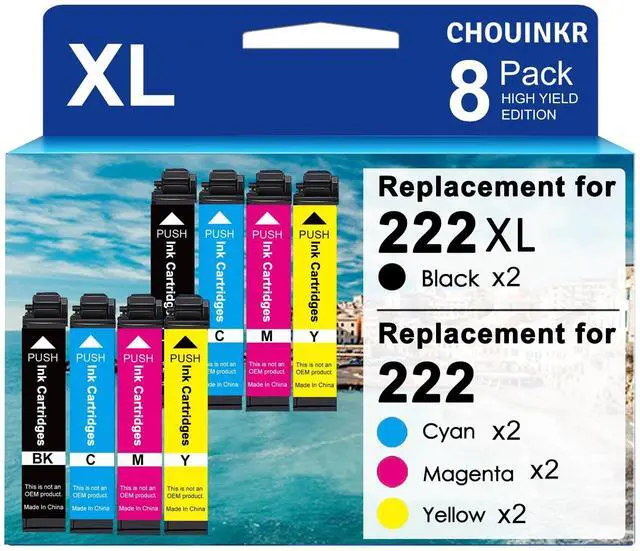 : replacement for 222XL Ink Cartridges Combo Pack (8 Pack) include 2x replacement for 212XL Black ink cartridge, 2x replacement for 222 Cyan ink cartridge, 2x replacement for 222 Magenta ink cartridge, 2x replacement for 222