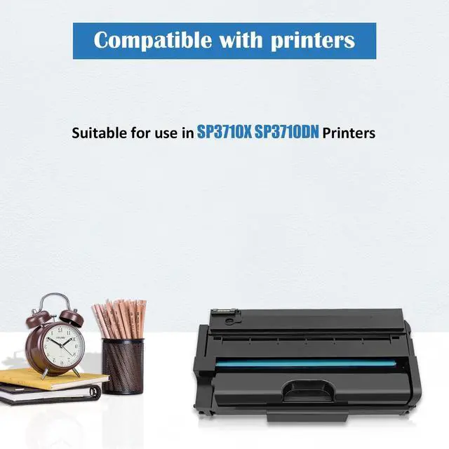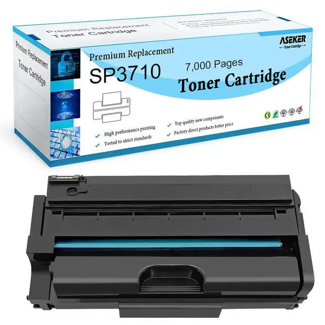 Package Contents - - Include 1 Pack Compatible Toner Cartridge for Ricoh SP 3710 3710X, 408284 Black. ^^ Compatible Printers - - Suitable for use in Ricoh SP SP3710X SP3710DN Printers. ^^ High Print Yields - - Up to 7, 000 pages per toner cartridge, 5% coverage at A4 pager, based on ISO / IEC 19752. ^^ Print Advantages - - Refined toner powder and high-quality cartridge, deliver accurate bright color, sharp black and crisp graphics. ^^ Reliable Warranty - - Timely after-sales and quality assurance services, let you to enjoy the fun of printing easily.