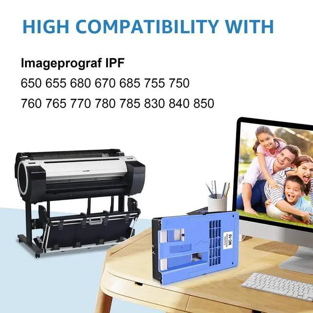 Package contains1 Pack MC-10 maintenance cartridges compatibile for Canon MC-10 Maintenance Cartridge. ^^ MC10 Maintenance Tank High CompatibilityCompatibile for Canon Imageprograf IPF650 655 680 670 685 755 750 760 765 770 780 785 830 840 850. ^^ Equipped with new chipYongairuink MC-10 Maintenance Cartridge Waste Ink Tank is equipped with a new chip that can be easily recognized by printers, preventing clogging of the print head and reducing damage to the print head. ^^ Efficient absorption of residual inkEach Yongairuink compatible MC-10 Maintenance Box undergoes a rigorous quality testing process to ensure easy installation, high compatibility and highly absorbent cotton fibers that absorb residual ink quickly and effectively, provide reliable maintenance cycles and reduce the frequency of replacement.