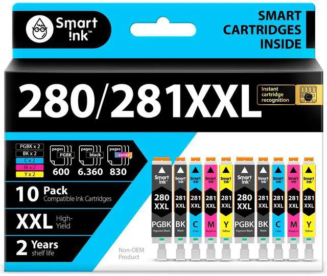 Package Contents: 2 x Pigment Black 280 XXL, 2 x Black 281 XXL, 2 x Cyan 281 XXL, 2 x Magenta 281 XXL, 2 x Yellow 281 XXL (10 cartridges in total) ^^ Print More with