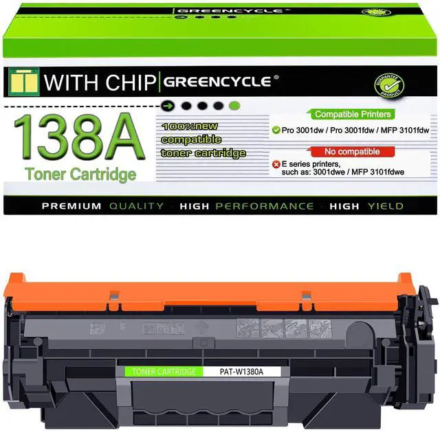 With Chip: 138A Black Toner Cartridge replacement for HP 138A W1380A High Yield Toner with the latest chip, No need to remove and install the old chip on 138A toner cartridges.