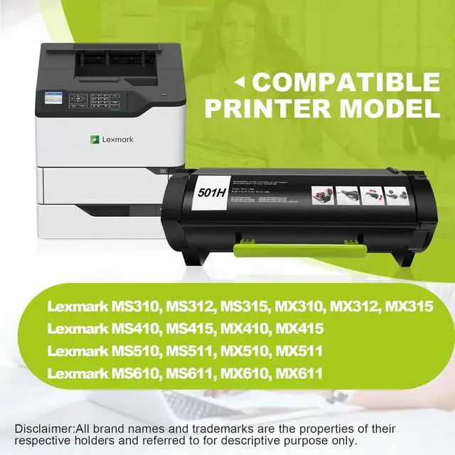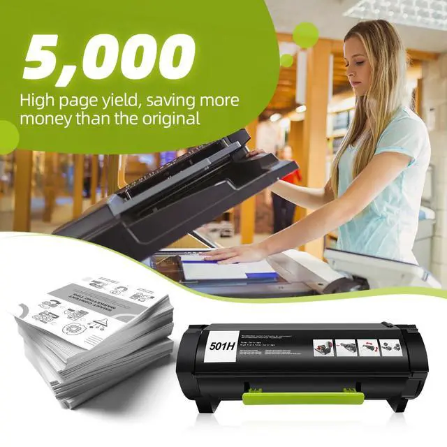 ^^ Page Yield Rating: Up to 5, 000 pages per compatible Lexmark 501H toner cartridge at 5% coverage black on Letter/A4.