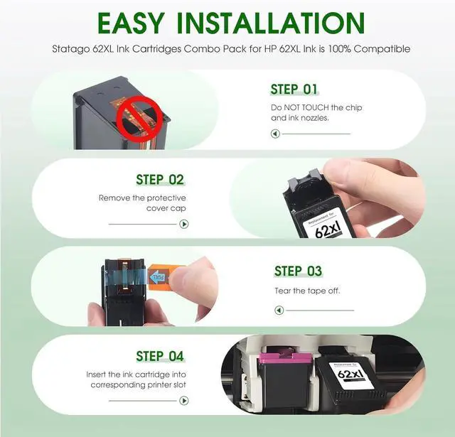 Warm Tips: Statago 62XL ink cartridge promotes environmentally-friendly printing practices. Statago 62xl printer ink cartridge is not an OEM products