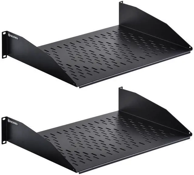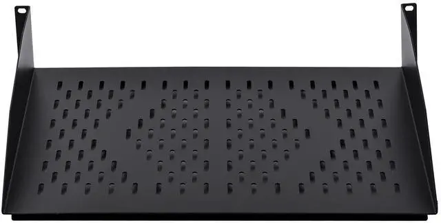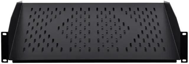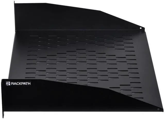 The RackPath cantilever shelf is designed to support your non-rack mountable equipment in your rack such as routers, modems, tower computers, UPS systems and monitors. The vented cantilever tray helps to improve air flow and keeps your equipment from overheating. Constructed from heavy duty cold rolled steel with a durable black electro-static powder coated finish, the shelf has a maximum weight capacity of 55lbs (25kg). All mounting hardware is included.