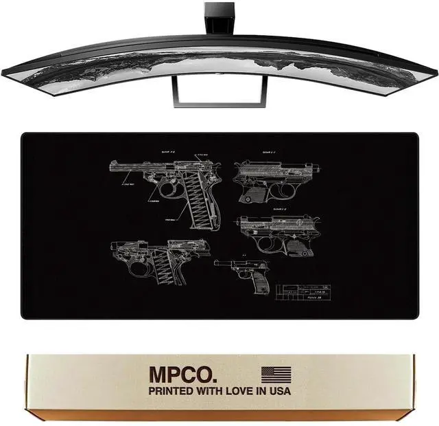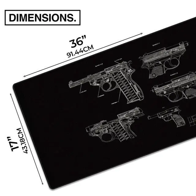 MPCO. Blueprints Large Gaming Desk Pad - 36" x 17" Duraglyde Fabric Pistol 38 Black Desk Mats - Non-Slip, Washable, Smooth Glide for Precision Gaming & Work