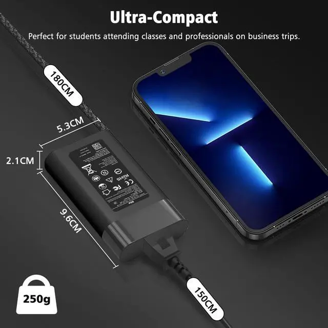 ^^ Skyvast Charger Quality: Our 65W USB C charger replacement for HP has been designed by professionals and upgraded again, the quality has been upgraded again. The internal smart chip can recognize your computer faster and provide you with the most efficient charging method, overheating, overvoltage, overcurrent and many other dangers will no longer exist, CE/FCC/ROHS and other certifications have been passed
