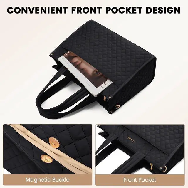 LOVEVOOK Women's Laptop Bag Introduction: This women's laptop handbag combines embroidery thread with modern fashion. The handle is also padded with cotton, and the specially designed pocket on the front makes this handbag a classic. No matter where you go, the lovevook laptop tote bag perfectly reflects your elegant and beautiful style. ^^
