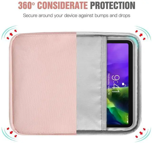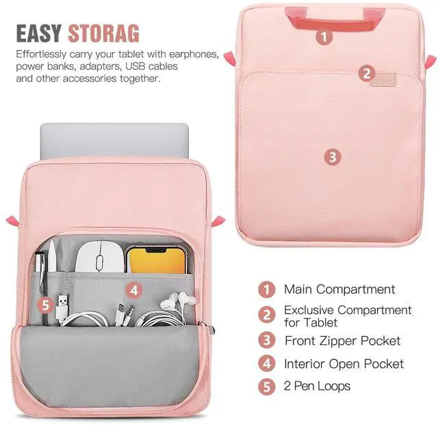 Features: With waterproof exterior and soft fleece interior to protect against water, dust, scratch, bumps, and cosmetic damage. Two-way zip closure keeps your tablet secure and allows for easy and quick access. Built with an adjustable shoulder strap for you to carry outside easily. Perfect for carry while on-the-go, business or travel. And with the compact size and light weight, you can also transport inside your backpack or briefcase. Multiple compartments offer enough space for your precious tablet and accessories like cables, mouse, earphone, notes, wallet, cards and more small items. Minimal and trendy style.