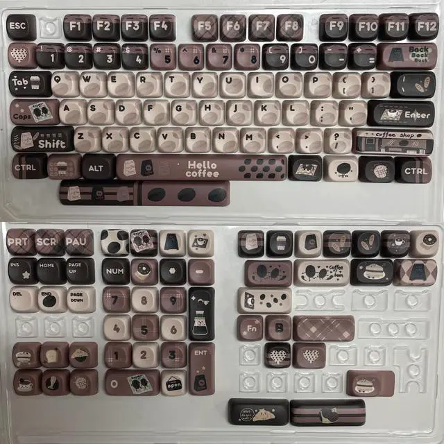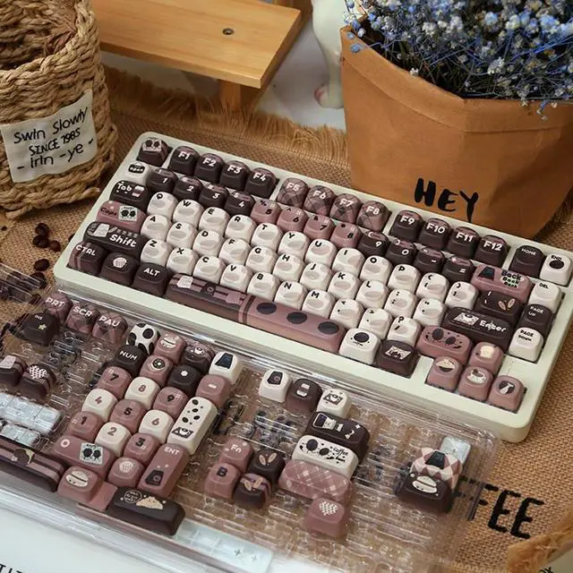 Brown vintage keycaps, keycap set with lots of brown pattern elements, keycap height is MOA, round keycaps are very cute, these keycaps add colour to your keyboard, ideal gift for keyboard enthusiasts who love brown colours, keycaps are available in 130+ keys!