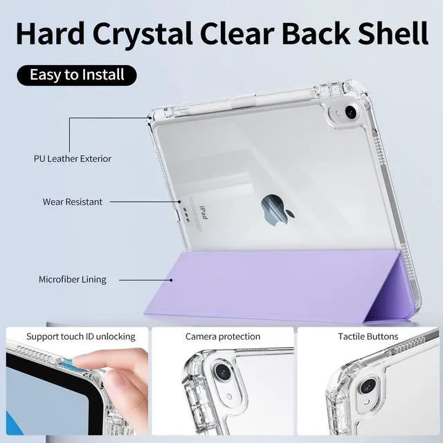 ^^ Full Protection: The transparent hard-shell back cover protects your iPad from shocks, drops, and impacts. The surface is soft and silky, providing a comfortable touch to the skin. You can clearly see the iPad logo through the back cover, while it showcases the original beauty of your iPad.